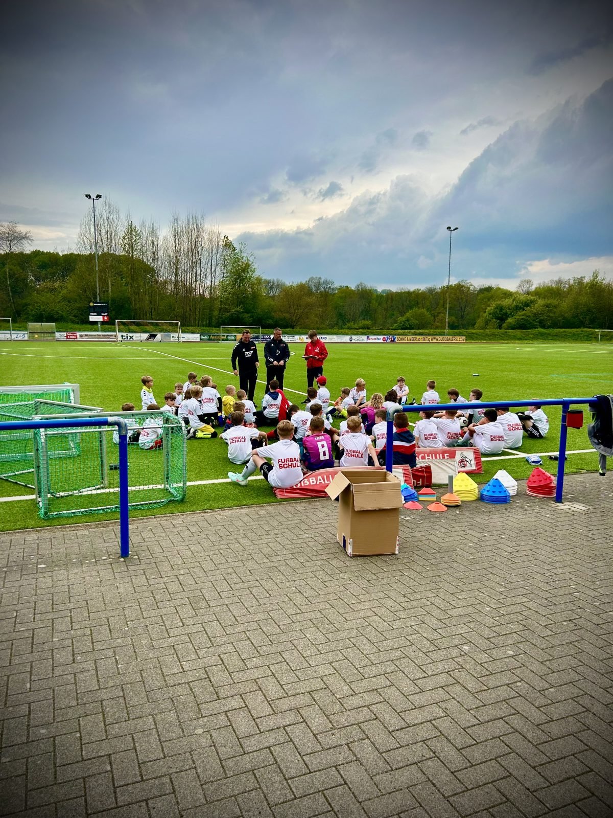 Vom 22. bis 25. April 2025 fand bei uns unser Oster-Fußballcamp 2025 organisiert von der 1. FC Köln Fußballschule Heinz Flohe für 30 Kinder statt. Während der vier Tage drehte sich alles um Fußball, Spaß und Teamarbeit. Ziel war es, den Kids spielerisch die Grundlagen des Fußballs zu vermitteln und gemeinsam eine schöne Zeit zu erleben.