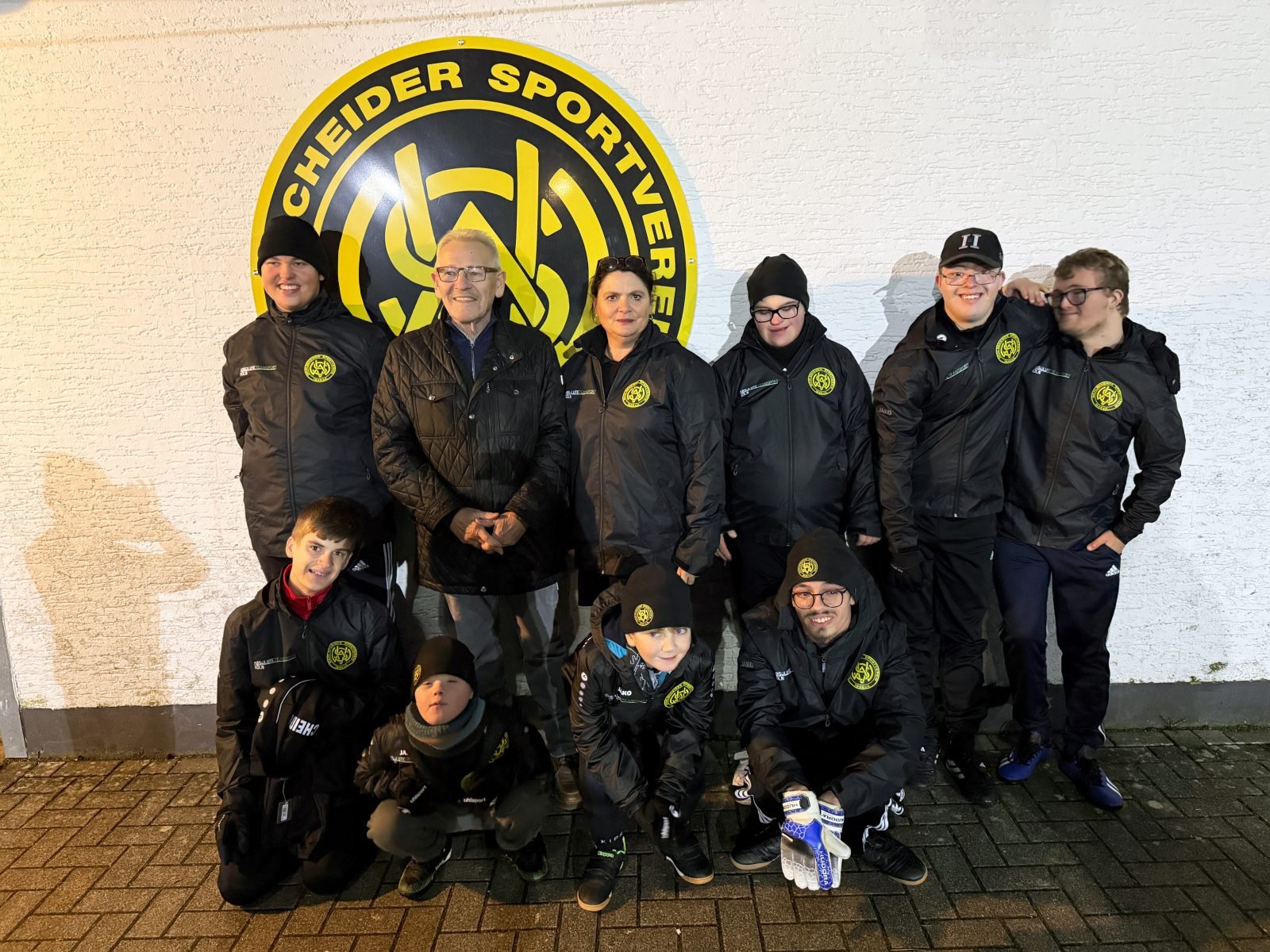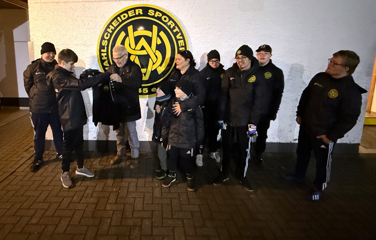 Die Jugendabteilung des Wahlscheider SV, insbesondere die Kinder der Inklusionsmannschaft sowie ihre Trainerin Tanja Büscher, bedankt sich ganz herzlich bei Lothar Peters, dem Vorsitzenden der Vereinigten Wahlscheider Ortsvereine, für diese Spende. Mit großem Stolz haben die Kinder die neuen Jacken und Shirts direkt nach der Übergabe zu ihrem Training getragen.