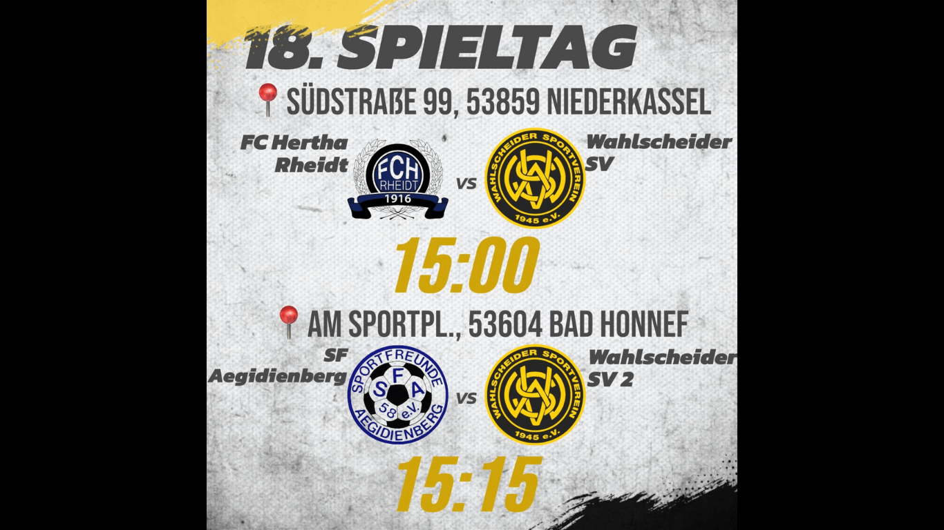 Für die 2. Mannschaft steht hingegen ein schwieriges Auswärtsspiel beim Tabellenführer aus Aegidienberg an. Nach zwei Niederlagen zum Rückrundenstart richtet sich der Blick in der Tabelle derzeit eher nach unten, sodass dringend Punkte benötigt werden. Anstoß der Partie ist um 15:15 Uhr.